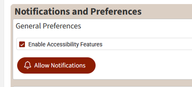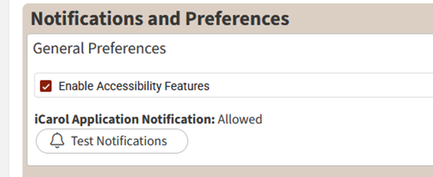 IMPORTANT: Until the modernization project is completed, please click “More notification settings” and enable notifications from the legacy application as well. While iCarol provides a seamless user experience between elements using our legacy application and our modern application, permission must be granted to both to push notifications to your browser.