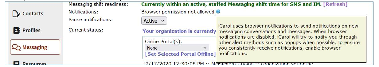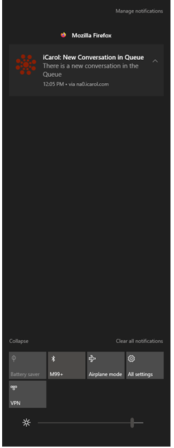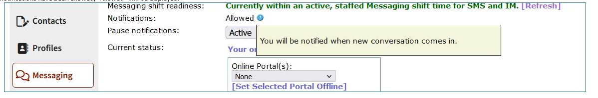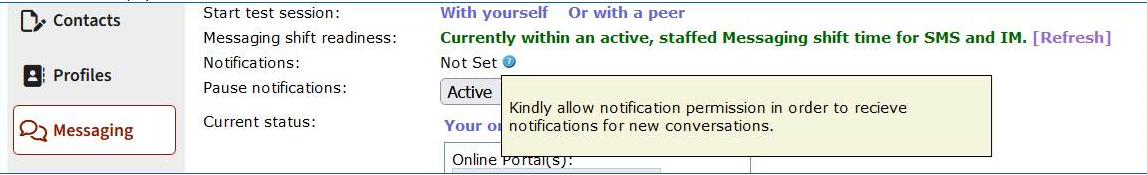 - Make sure the user has closed out of old pop-up notifications for new messaging conversations; if an old pop-up notification is still open when a new conversation comes into queue, the user may not receive the new pop-up notification until the old notification is closed