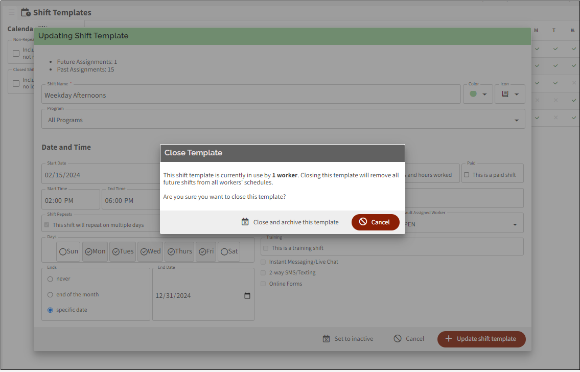 If the Shift Template you are setting to inactive has one (1) or more Future