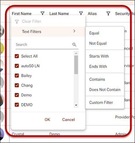 - Click on "OK" to apply filters, "Cancel" to go back, or "Clear Filter" to clear applied filters