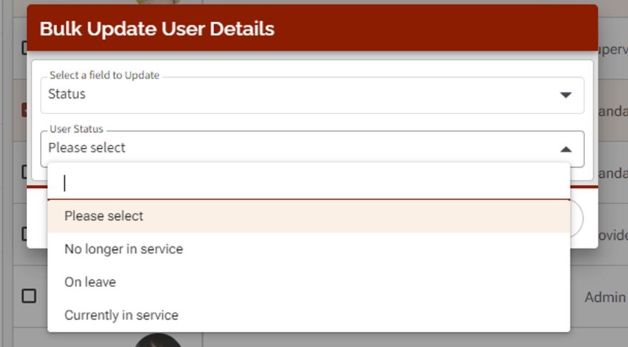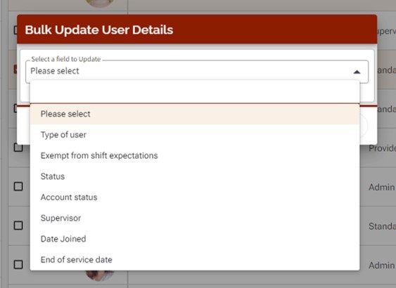 To perform Bulk actions, you will need to first select one or more vol-staff records