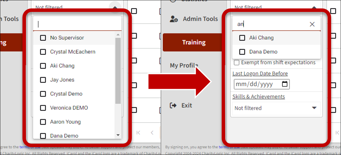 lists. When using a dropdown list filter such as “Supervisors”, users can limit