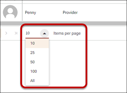 To change the number of records displayed per page
