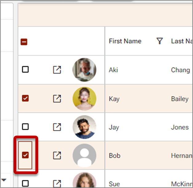 - Click the checkbox or anywhere within the listed row (except the open button)